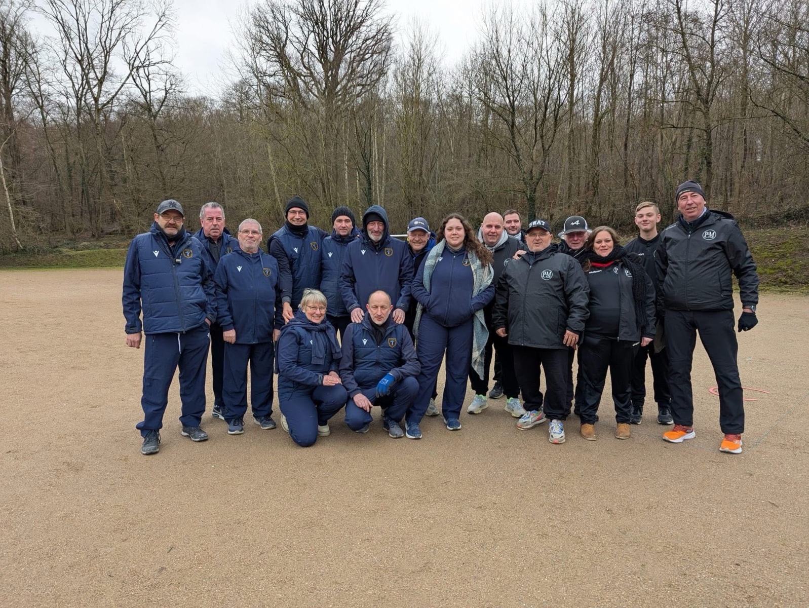 Ce premier tour de la Compétition s’est déroulé sur le terrain stabilisé des Clayes-sous-Bois ce dimanche 9 février 2025 à partir de 10h. Avant de disputer nos rencontres, il a fallu préparer les terrains. Dès le vendredi 7 février, nos bénévoles ont tracé 3 très beaux terrains de 24m sur 4m sur la partie haute du terrain stabilisé. Dimanche matin, rendez-vous au Club vers 9h15 pour les 2 équipes, Les Pétancoeurs Mantais et l’USMC Les Clayes-sous-Bois, pour prendre un café et remplir la feuille de match du matin pour les doublettes. En coupe de France, les équipes doivent être composées de la façon suivante : 1 capitaine non joueur et maximum 8 joueurs dont au moins une féminine qui doit jouer dans les 2 compositions (Doublette et Triplette). Les pluies de la veille et du matin jusqu’à 08h avaient effacé les traces laissées la veille, un p’tit coup de « rateau spécial » à 09h00 a permis de finir la préparation des terrains (Merci Hervé). Vers 10h30, après un échauffement d’environ 40 minutes en dehors de cadres réservés à la compétition, les capitaines ont donné le coup d’envoi des 3 rencontres en doublette. Les 3 doublettes ont été remportées par Les Clayes-sous-Bois, marquant donc le score de 9 point. Il faut noter qu’une des 3 parties est allée jusqu’à la limite de temps (2h) + 3 mènes pour se terminer sur le score de 7 à 6 pour Les Clayes-sous-Bois. Belles prestations de tous, Bravo !!!! Mais le match n’était pas encore gagné, il fallait remporter au minimum 1 triplette l’après-midi pour remporter ce premier tour de Coupe de France. Après une belle pause repas dans une ambiance très conviviale (Encore merci aux Bénévoles), il a fallu composer les triplettes et retourner sur le terrain. Le coup d’envoi a été donné à 14h. Après presque 2 heures de compétition, notre Club (Les Clayes-sous-Bois) a remporté les 2 triplettes s’ouvrant alors les portes du second tour départemental. Cette rencontre contre le Club Les Pétancœurs Mantais s’est déroulée dans une très belle ambiance conviviale et sportive, Merci aux différents Participants et Contributeurs qui ont mis tout en œuvre pour ce premier tour de Coupe de France de Jeu Provençal. La prochaine rencontre se disputera contre le Club VPC Vélizy.